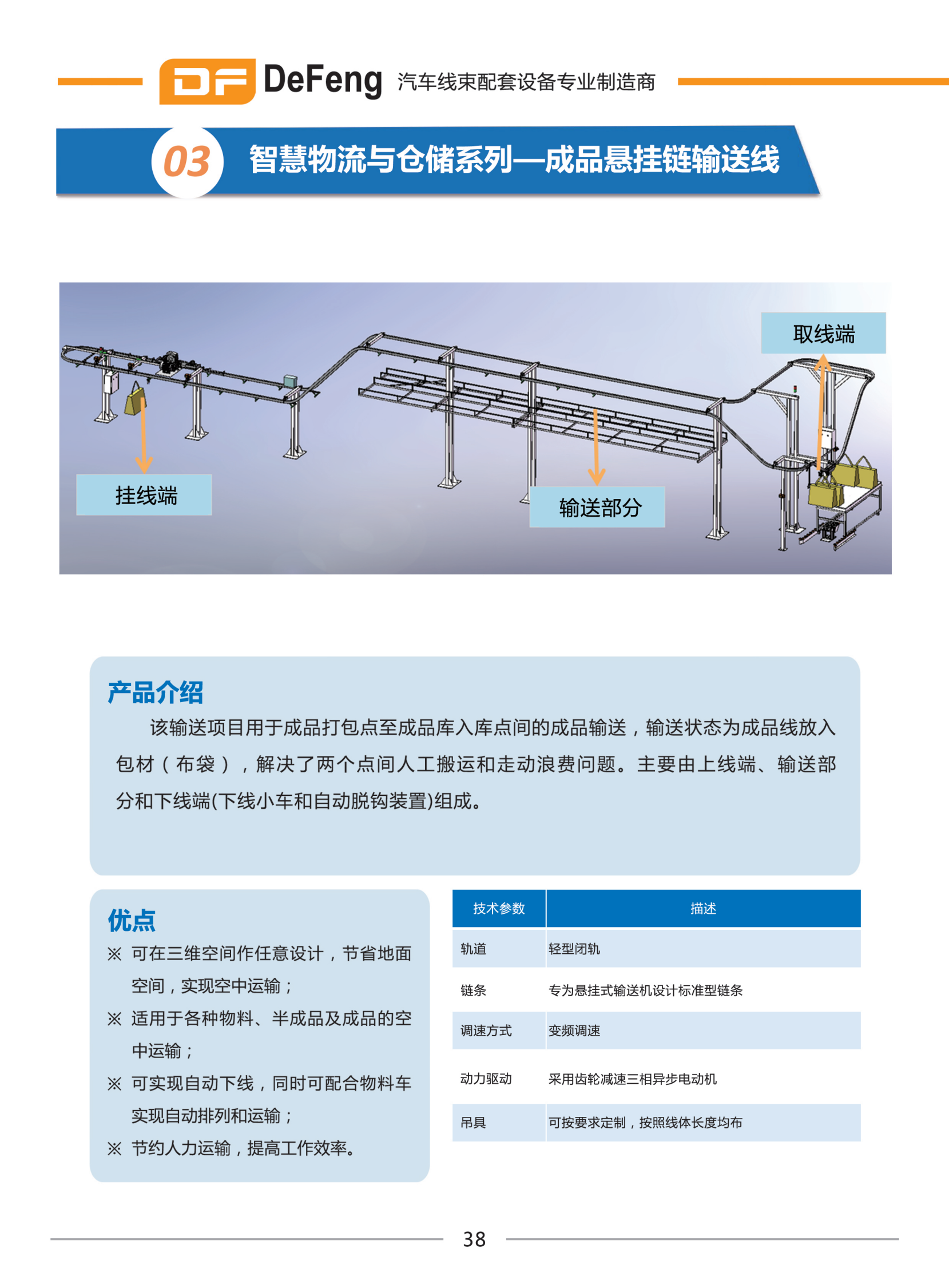 Finished product suspension chain conveyor line